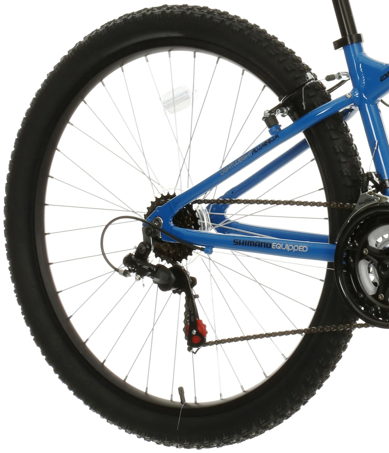 For consistent stopping power on the way back down, steel V-brakes provide controlled braking even on steep and slippery descents. You’ll also get plenty of grip on uneven surfaces with the 27.5 x 2.1inch MTB tyres, which sit on durable aluminium wheels.