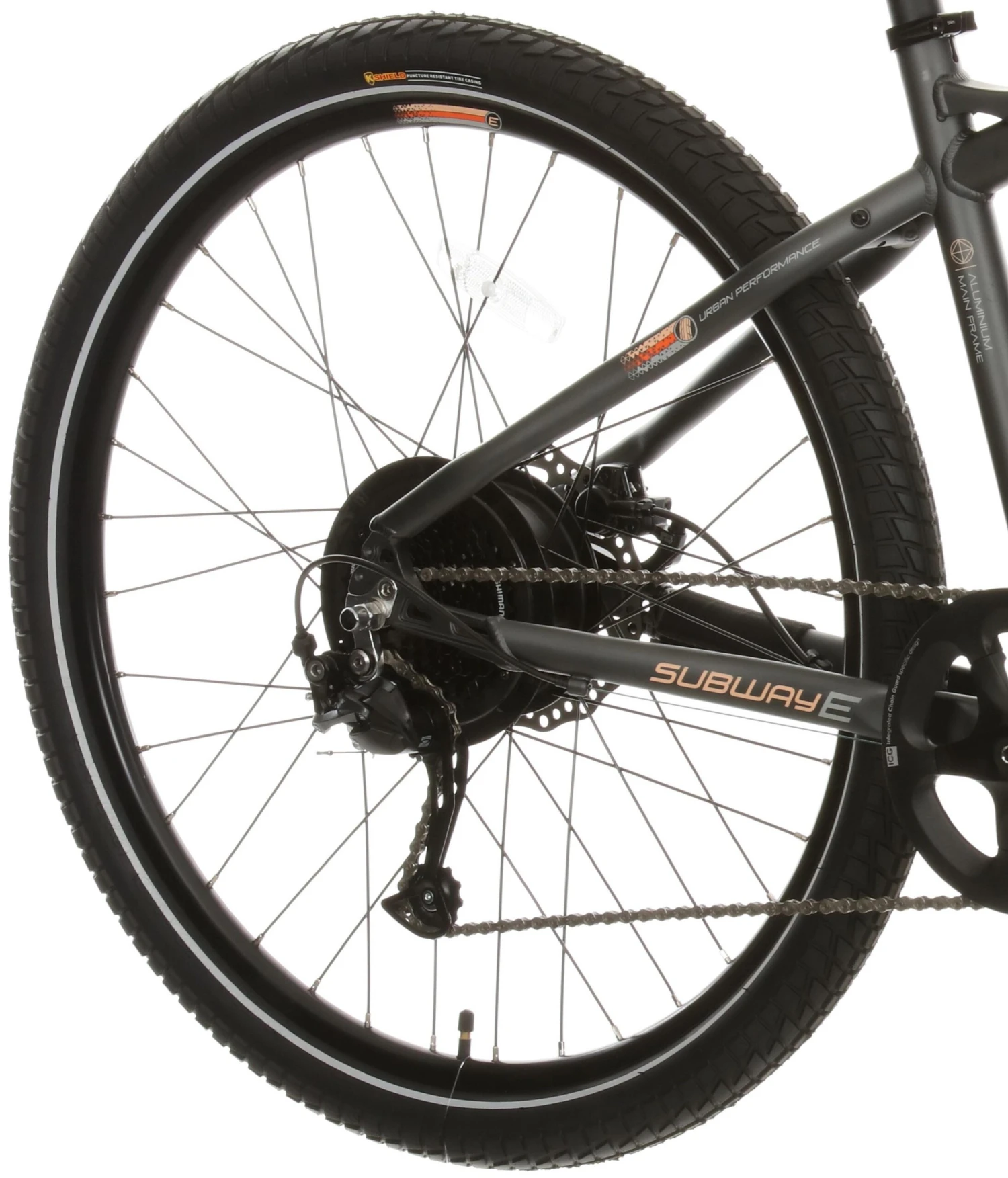 We know that with all that added power you'll want consistent braking so we have outfitted the Subway E with Tektro mechanical disc brakes with 180mm rotors, meaning stopping is a breeze.
