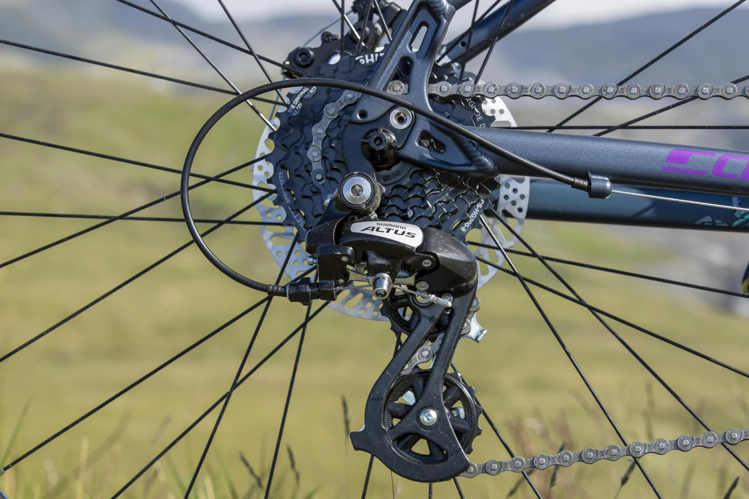 | Drivetrain | Shimano Tourney 2×7, 12-28t | Shimano Altus 2×8, 12-32t | Shimano Altus 2×8, 12-32t | Shimano Altus 2×9, 11-34t |
