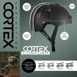 The Cortex Conform Helmet is one of the lightest and best fitting helmets available. Each Confirm helmet comes with 4 sets of pads to optimised the fit of your helmet not only improve the comfort, but also the safety and function of the helmet. As the name suggests this helmet is designed to CONFORM perfectly to all head types by mixing and matching the different pad thickness until you find the PERFECT FIT THAT IS RIGHT FOR YOU! The superlight weight In-Mould construction means each model weighs less than 290g, making it one of the lightest on the market