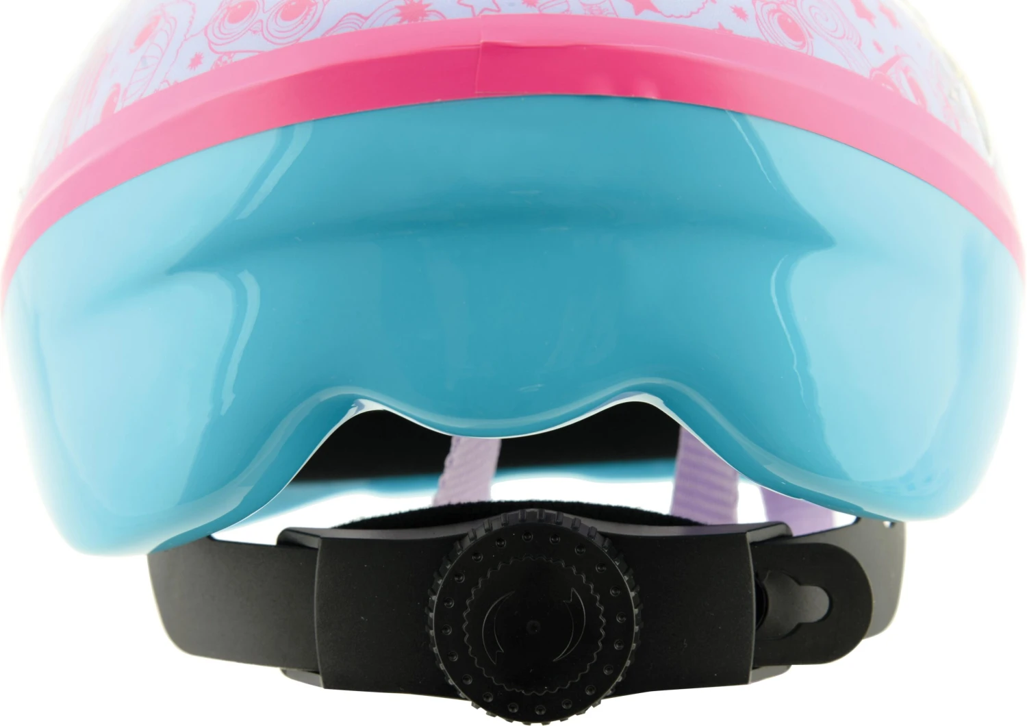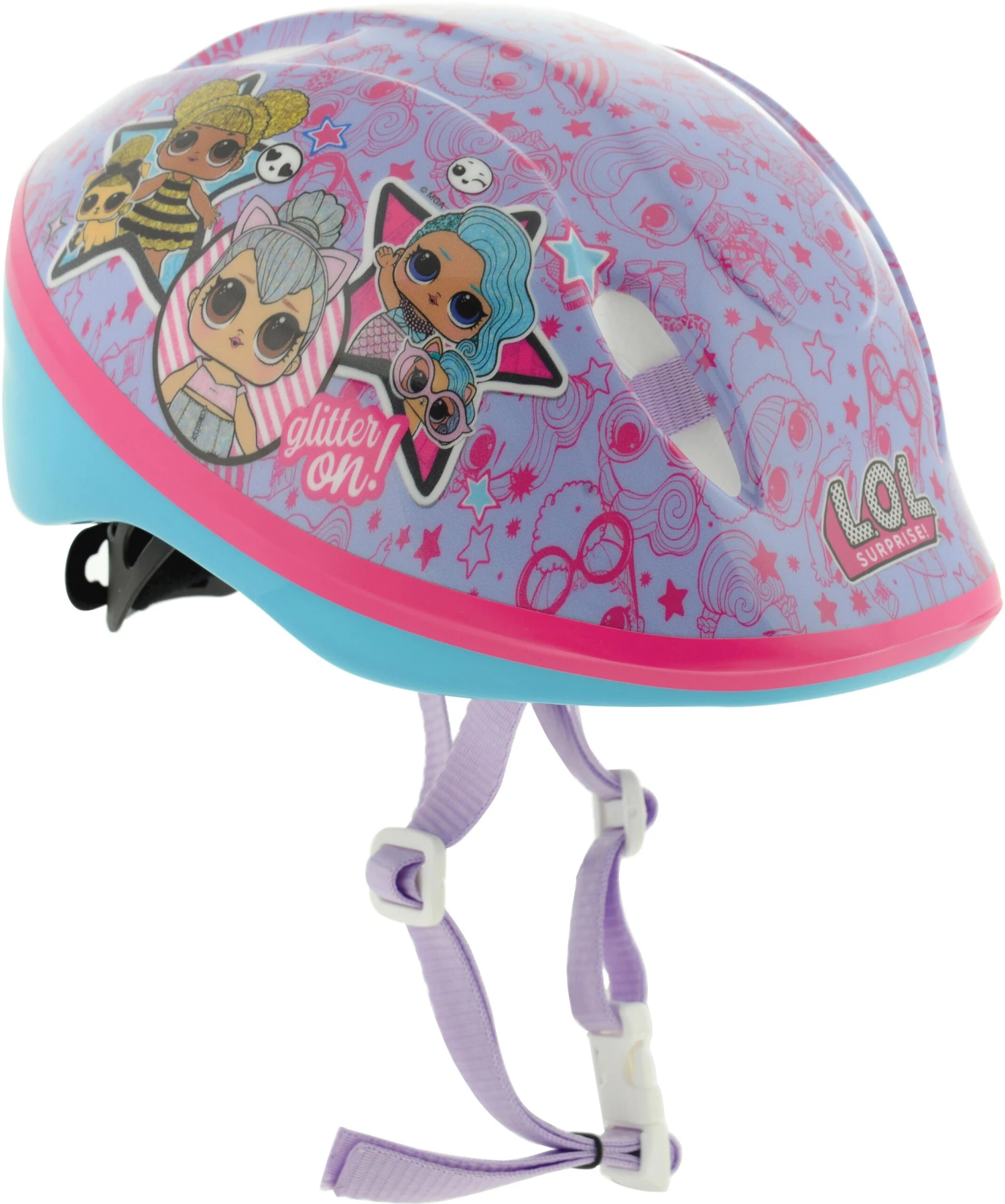 Stay safe and go glam when cycling, scootering or skating with the LOL Surprise Kids Bike Helmet! Designed with a bright all over character print, this helmet provides excellent durability with comfort. The adjustable straps and rear size dial ensure a snug but secure fit for head sizes 48-52cm whilst the ventilated shell and removable pads allow a soft, airy feel when riding. For additional safety and ease of use, it features an easy to use, quick-release buckle.