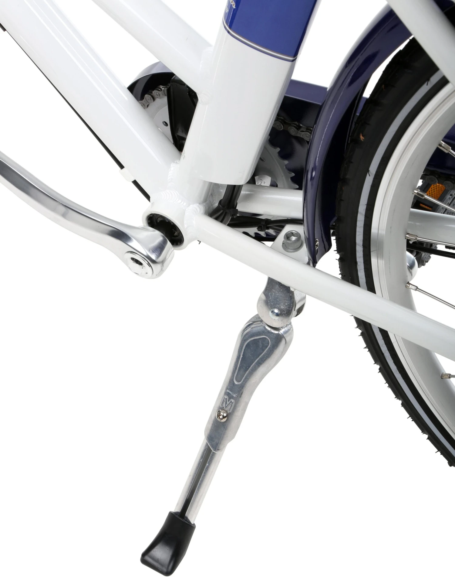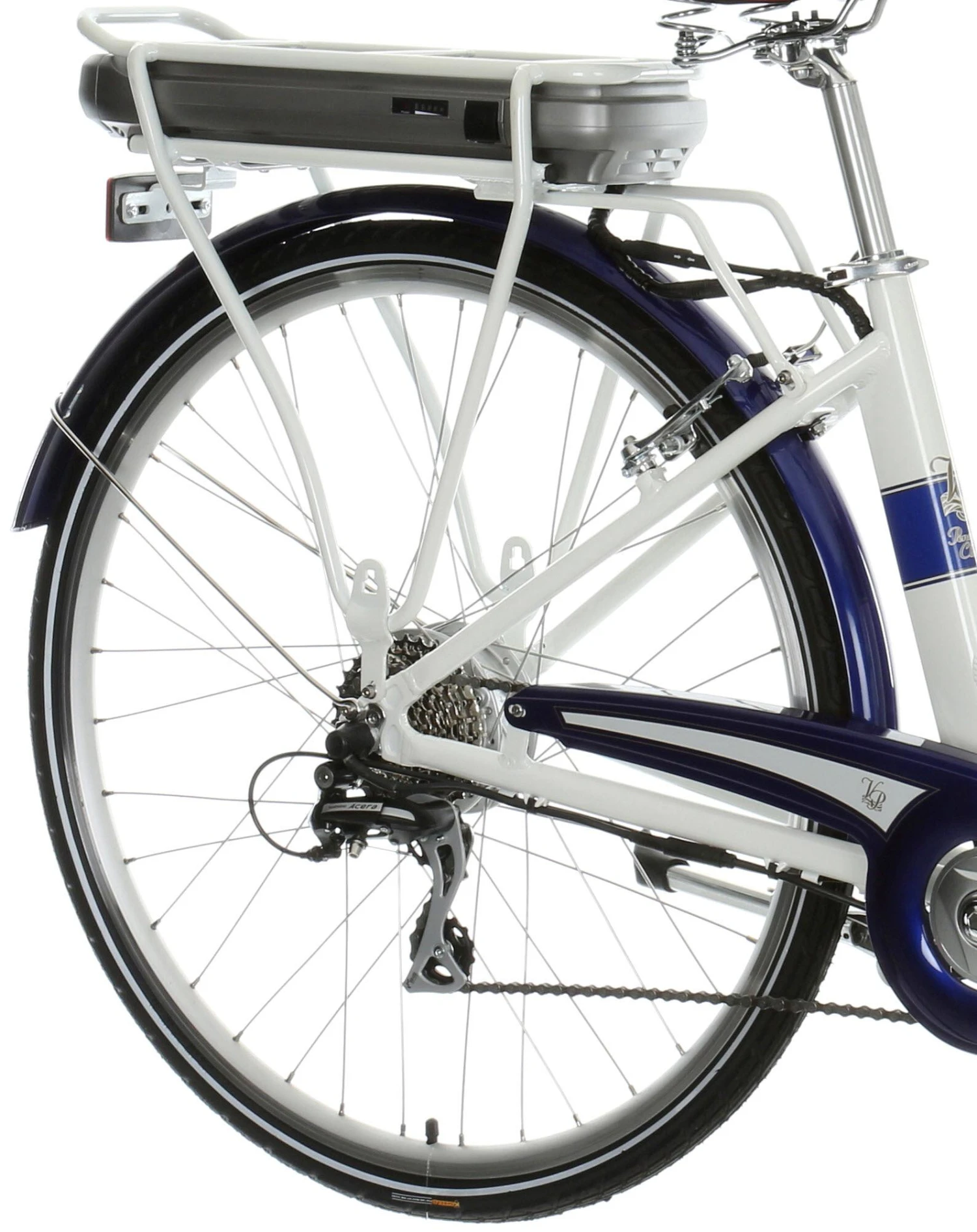 The 8-speed Shimano gears will ensure you glide along smoothly and built in mudguards and chainguard will protect your clothes should you hit any puddles. Powerful Tektro alloy V-brakes will bring you to a steady halt at the end of every stylish ride. Rest assured, this model also comes with a 2-year warranty on all electrical components.