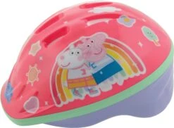 Stay safe with style when cycling, scootering or skating! Designed with a bright all over character print, the Peppa Pig Kids Bike Helmet 48-52cm provides excellent durability with comfort. This cute and colourful kid's helmet will keep heads comfy as well as protected thanks to its foam padding and adjustable dial fit system which provides a snug and secure fit.
