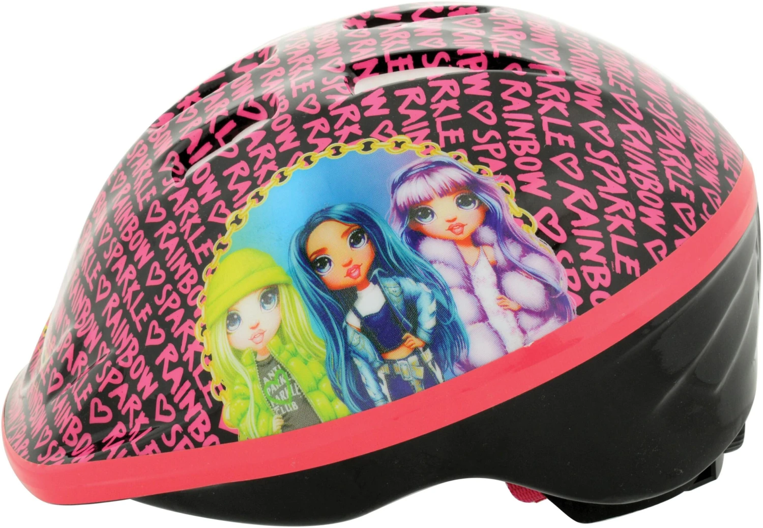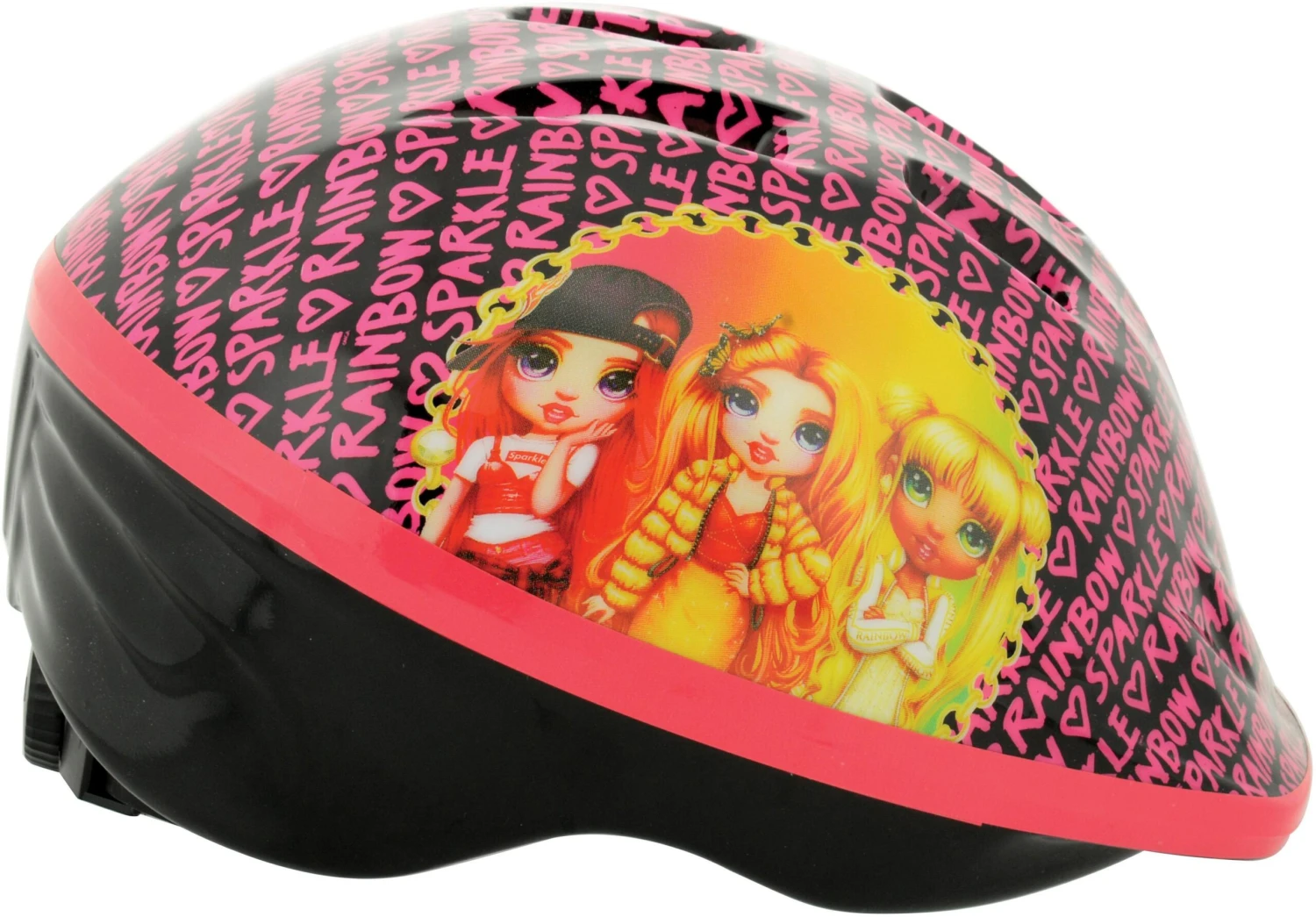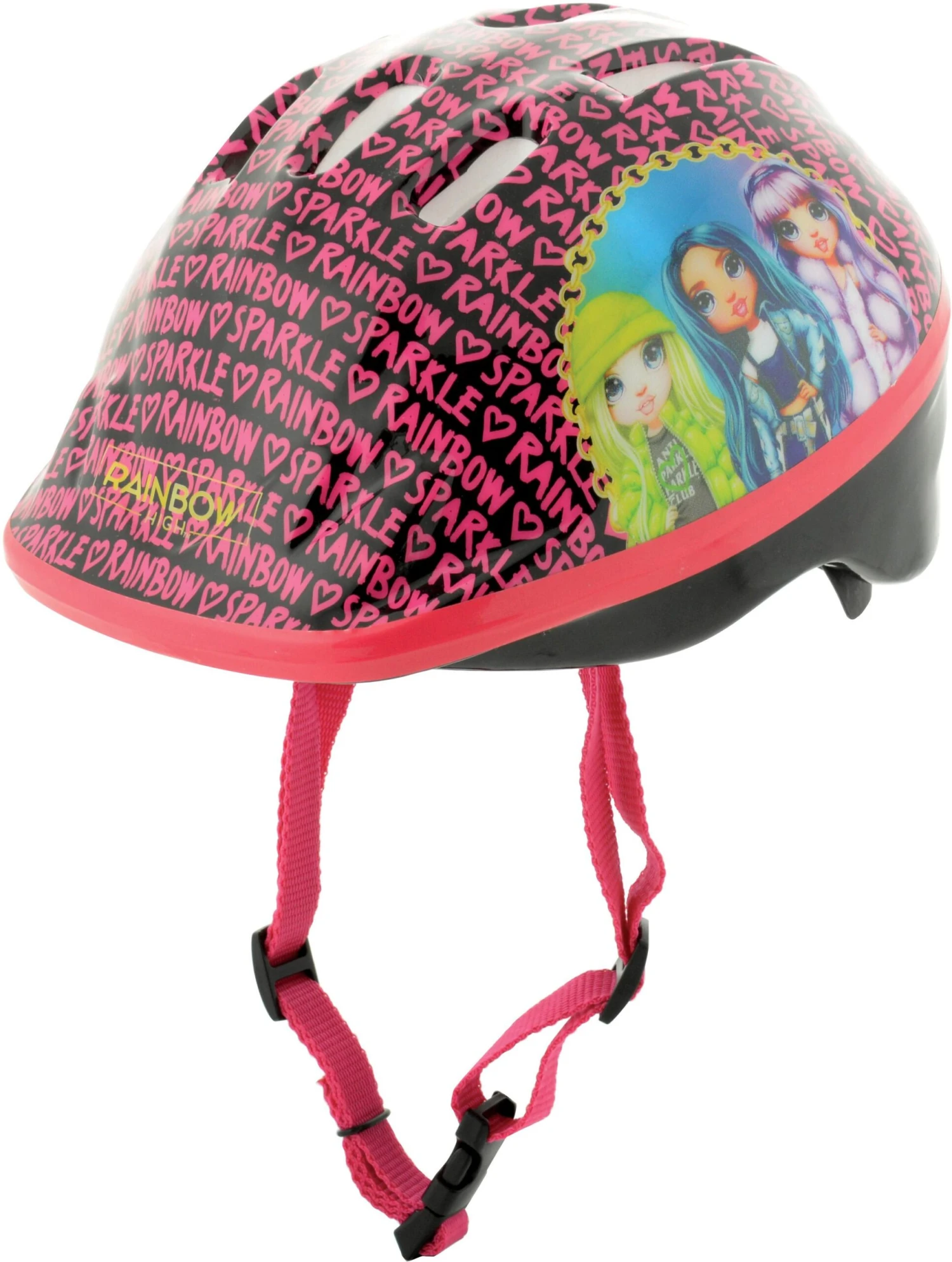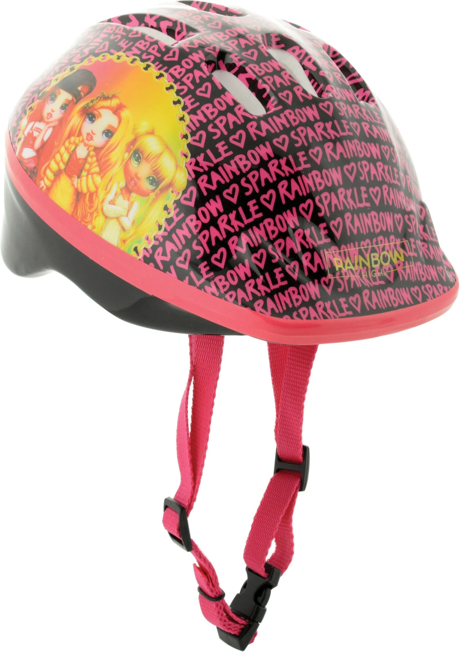 Rainbow High Dolls each have their own unique style and personality. Take your favourites along for the ride with the Rainbow High Safety helmet, perfect for cycling, scootering or skating! Designed with a bright all over character print, this helmet provides excellent durability with comfort. The adjustable straps and rear size dial ensure a snug but secure fit for head sizes 48-52cm whilst the ventilated shell and removable pads allow a soft, airy feel when riding. For additional safety and easy of use, it features an easy to use, quick-release buckle.