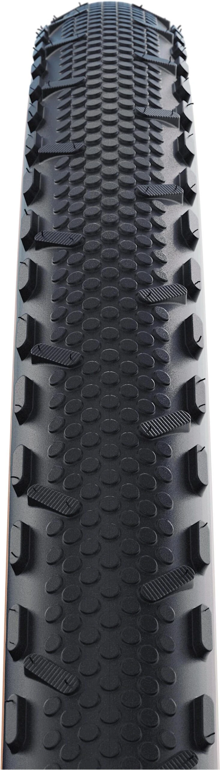 Semi-slick design with climbing and braking blocks.
