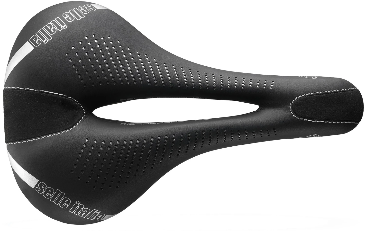 The special anatomical Flow cut ensures excellent seating comfort by offering flexibility in the central part of the saddle.