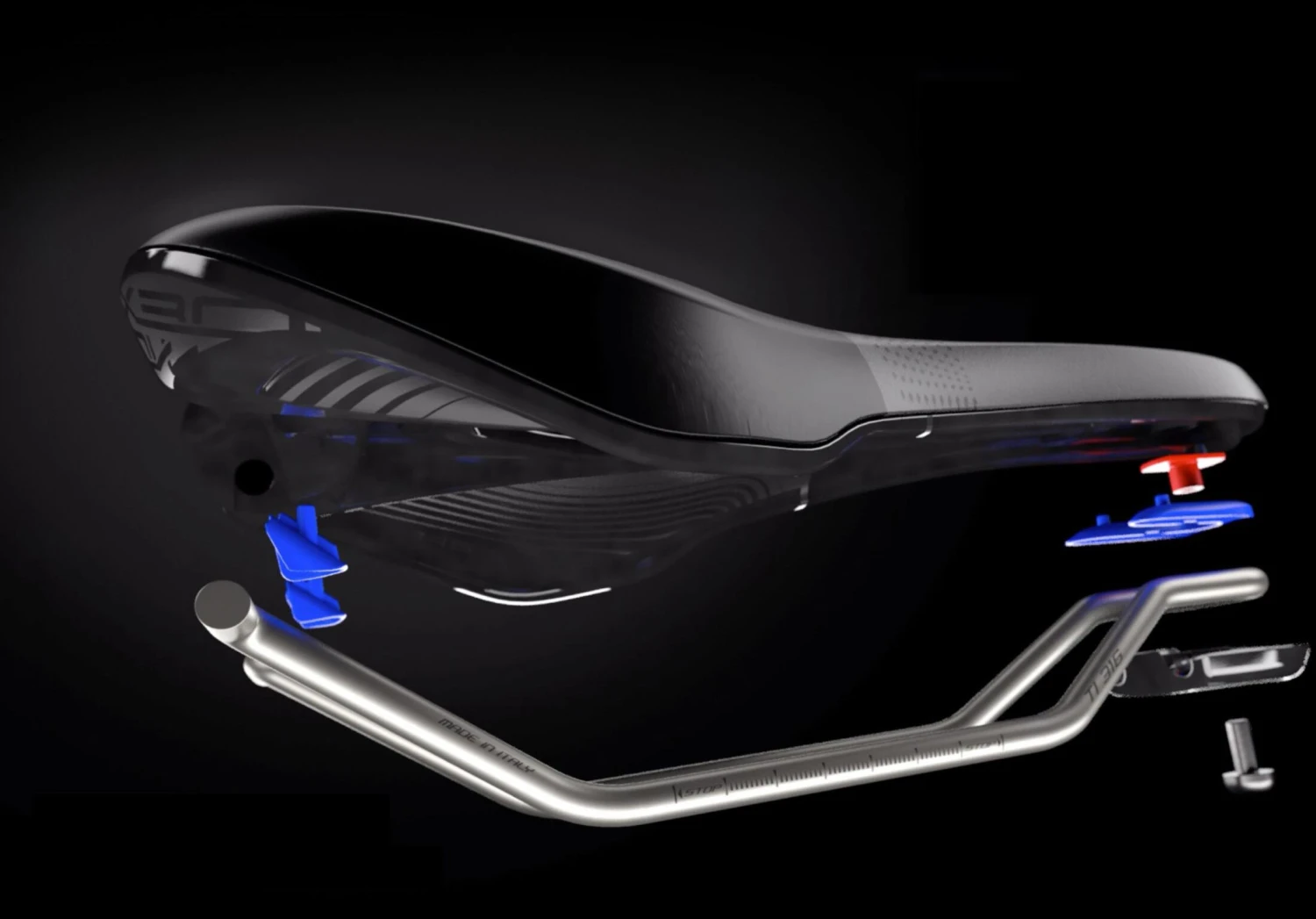 Absorption system between the shell and the rail that highly reduces road shocks and vibrations.