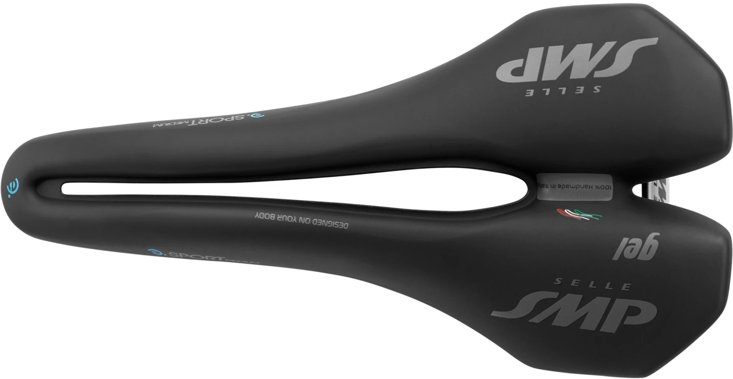Selle SMP E-Sport Medium Gel Saddle ideal for cyclists with medium/narrow pelvises. Suitable for racing / off road gravel.