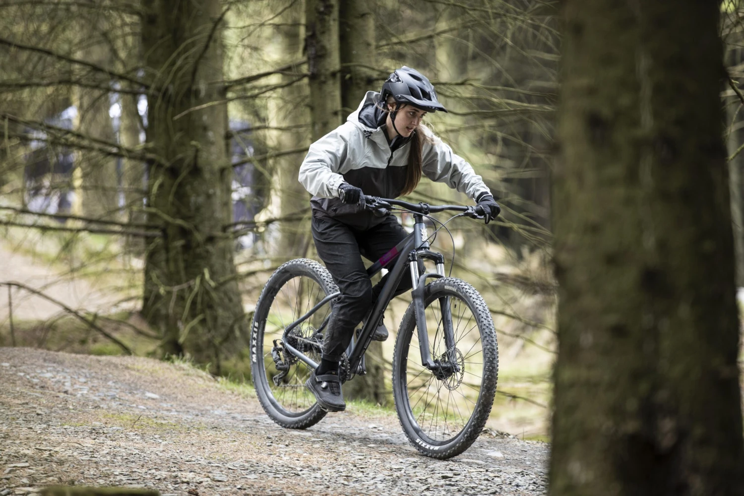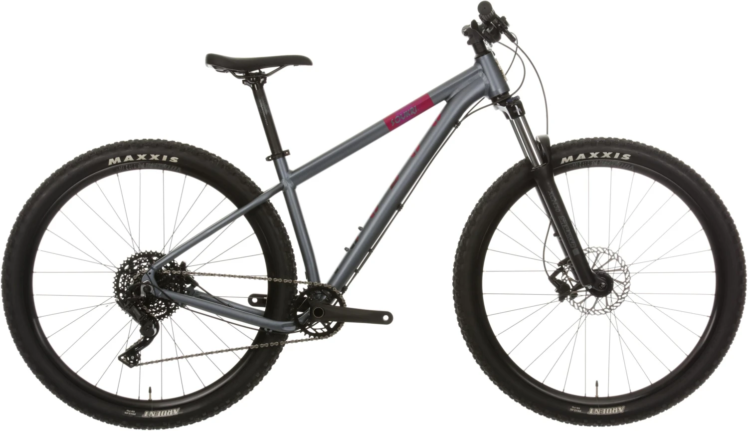 The knobbly profile of the Maxxis Ardent 2.25” tyres hold the bike firmly on the trail, with dependable grip around corners, while a ramped design to the centre tread lowers rolling resistance at speed.